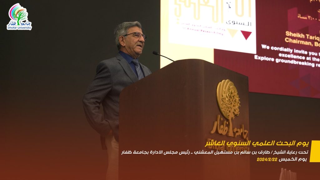 وأكد مواصلة رعاية المواهب البحثية ودعم مشاركة أعضاء الهيئة الأكاديمية والإدارية والطلاب في مبادرات وزارة التعليم العالي والبحث العلمي والابتكار والمشاريع البحثية الممولة من جامعة ظفار وتقديم الحوافز لمجموعة من الأنشطة المتعلقة بالبحوث العلمية بما في ذلك النشر في المجلات العلمية وفصول الكتب والكتب وبراءات الاختراع والمنح للمشاركة في المؤتمرات العلمية، مشيدا بالمشاركة النشطة لطلاب جامعة ظفار في البحث العلمي.