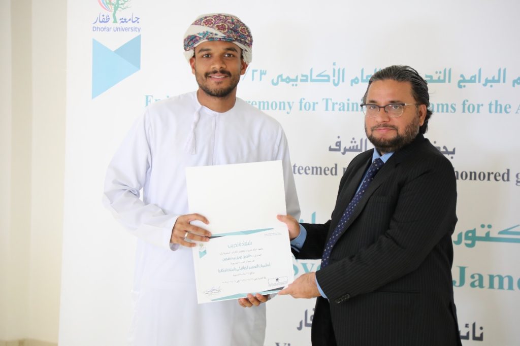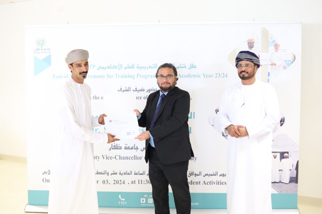 في الثالث من أكتوبر 2024، أقيم حفل ختام البرامج التدريبية لمركز تدريب وتطوير الكوادر البشرية بنجاح لهذا العام الأكاديمي. حضر الحفل عدد كبير من أعضاء الهيئة الأكاديمية والإدارية، بالإضافة إلى الدكتور سيد إحسان جميل، نائب رئيس جامعة ظفار، كضيف شرف.