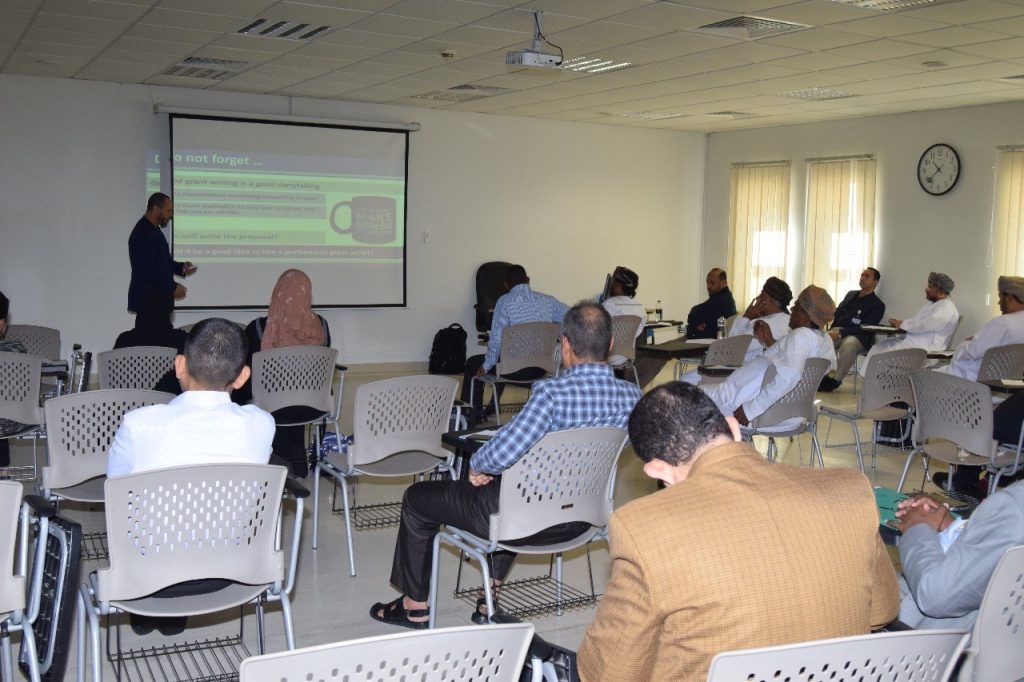 No. Development program name Date 1 Effective Student Writing 6/11/2019 2 Alignment of PLOs and CLOs 9/11/2019 3 Community Service Priorities in Oman 11/12/2019 4 Course Design, Course Syllabus and Lesson Plans 14/12/2019 5 National Research Priorities 21/12/2019 6 Grant Proposal Writing 21/12/2019 7 Challenges of teaching online: