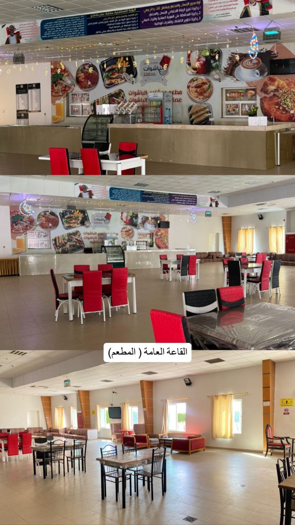 The housing consists of four buildings, each building can accommodate more than 300 female students, with the building containing the necessary facilities. Furnished rooms, kitchens, laundry halls, study halls, and a TV-watching hall. The residence includes a large hall containing a restaurant, a supermarket, a gym equipped with the necessary equipment, and a health clinic. There is also a garden between the buildings with spacious courtyards that allow female students to breathe and enjoy. The university provides security and supervision services in the residence on a 24-hour shift system.