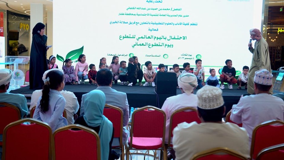 The International Volunteer Day and Omani Volunteer Day, observed on December 5 every year, were jointly celebrated by the Social Work Group at the Department of Social Sciences, College of Arts and Applied Sciences, Dhofar University, and Salalah Charity Team. The event was held at Salalah Grand Mall under the patronage of Mr. Mohammad bin Humaid Al Kalbani, Director of the Directorate General of Social Development (DGSD) at Dhofar Governorate.