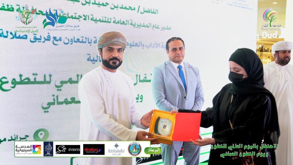 The ceremony included a presentation (volunteer experience) by Engineer Mohammed bin Musallam Hubais, a Board of Directors member of the Salalah Charity Team. The presentation highlighted his own experience in volunteering activities locally and internationally.