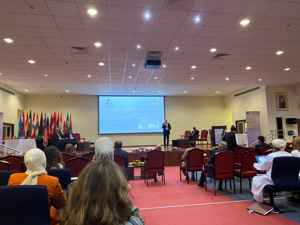 Dhofar University recently participated in the 41st Conference of the Arab Association of Collegiate Registrars and Admissions Officers (Arab-ACRAO) from 15 to 18 December 2024, which was held at the National University in Muscat. The 41st conference was entitled “The Role of Artificial Intelligence in Enhancing Admission and Registration Processes”. The participation was through a paper by Dr. Tareq Muhammad Alhousary, Dean of Admissions, Registration, and Student Affairs at the University. The paper entitled “Advancing Registration Processes through Developing an AI-Empowered Academic Advising System”. It is worth mentioning that the organization aims, through its conferences, to enhance and develop admission and registration processes in universities in Arab countries by holding annual conferences in which research related to developing admission and registration systems is presented, in addition to exchanging related experiences between participating members. It is worth noting, also, that this is the first time that this organization has held a session in the Sultanate of Oman.”